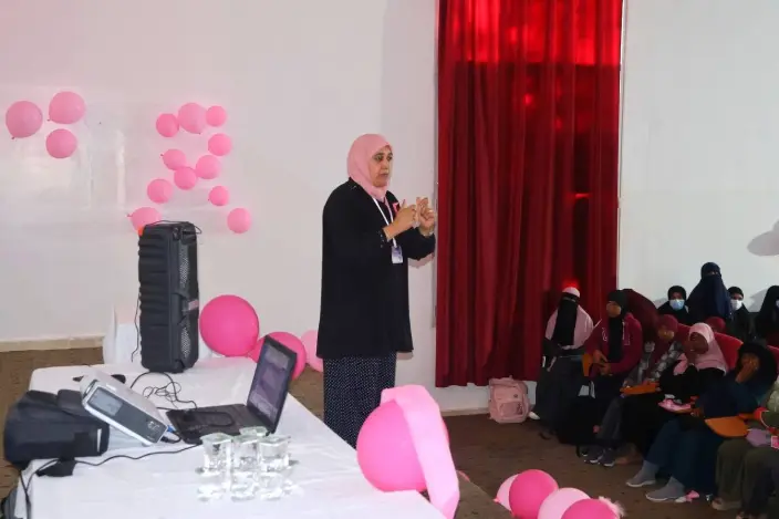 بتاريخ 5 نوفمبر 2025 محاضرة توعويه للكشف المبكر عن سرطان الثدي في ( ((مسرح كلية التربية كاباو))